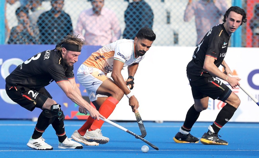 Goalkeeper Krishan Pathak deflected Benedikt Schwarzhaupt’s shot, and India launched a counterattack, but Harmanpreet’s reverse shot found only the side netting.