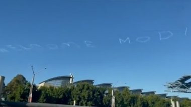 ‘Welcome Modi’ spelt by a recreational aircraft’s contrails posed a mesmerising sight in the clear blue sky over Sydney ahead of the community event organised to greet Prime Minister Narendra Modi in Australia.
