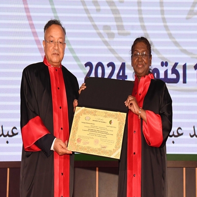 President Droupadi Murmu addressing the Siddi Abdellah University said that this doctorate is an honour for my country, a country that had stood for peace and prosperous world from time immemorial. She said that education neutralises the inequalities and promotes equal opportunity for all.She urged the Algerian Govt,Higher Education department and students to avail the benefits of India’s ITEC program and other scholarship programs.