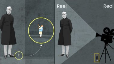 BJP in its reply also uploaded a picture of Jawahar Lal Nehru in which there is a camera focussing on him and pointing out the difference between his real and reel stature.